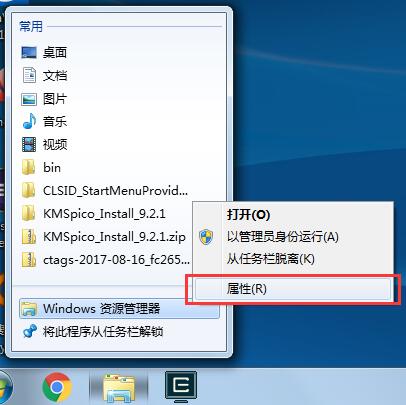 1. 右键任务栏库图标,右键弹出菜单里的“Windows 资源管理器”,单击“属性”。